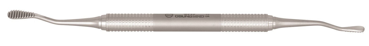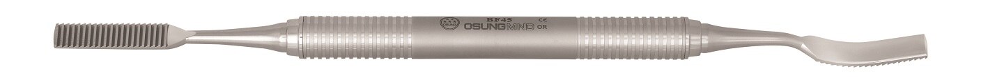 To smoothen the surface of a bone. There are a string of blades on the file. BF22 •Miller •Straight-cut blades •Pull stroke BF1X •Miller •Cross-cut blades •Pull & Push stroke BF45 •Miller •Pull & Push stroke •For the wide surgical area