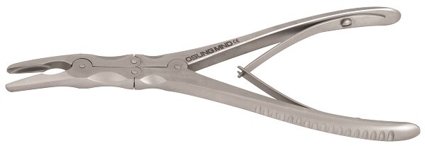 Bone Rongeur •To remove granulation tissue, fractured bone. •It has sharp blades on both sides of the beak. RNGF140 •Length : 142mm(±5mm) •Small-sized RNG165 •Length : 165mm(±5mm) •Normal-sized RNG178 •Length : 178mm(±5mm) •Double action type for increasing the grip force. •Less sliding and hand fatigue Nipper •To cut soft tissue and bone as well as tissue residues. TNC100 •Length : 100mm(±5mm)