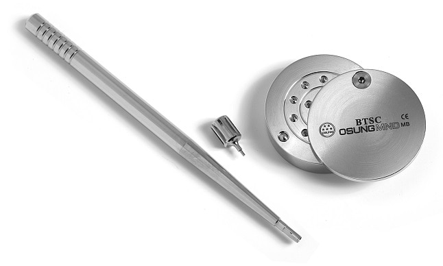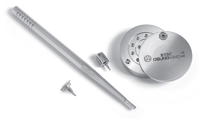 This Bone tack is designed to be driven in using a mallet at the time of insertion while being screwed out using a driver at the time of removal, with a view to fixing membranes or foils. •This Bone Tack has a screw structure directly under its head, which allows for easy removal using the driver supplied with the product. •It is made of titanium GR5 ELI and is available in 3mm and 5mm in size. 3mm Tacks are for normal bone while 5mm Tacks for soft bone. Bone tack Kit Consist of: Product Quantity Bone Tack Holder 1 Case 1 Bone Tack 0.85X5mm 5 Bone Tack 0.75X3mm 9 Hexa Driver 0.9mm 1 ** Bone Tack Refill Available** Bone Tack Offset Holder •TOffset •For posterior