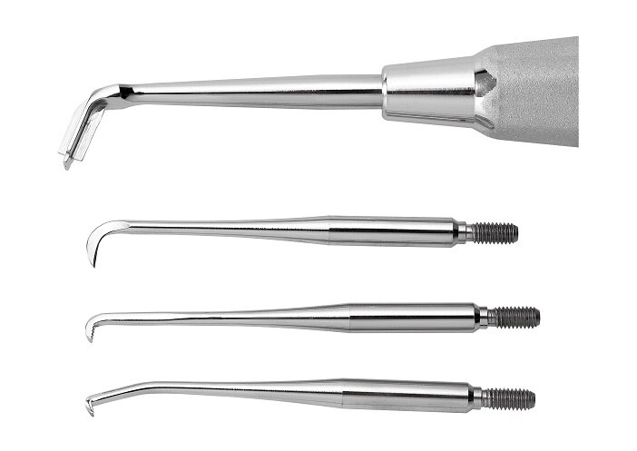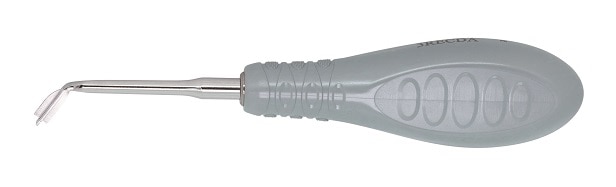 Used for removing a crown easily. First, make a gap in the crown using a bur and twist the crown after putting a blade in the gap. 3RECDA Plastic Handle 4RECDA Aluminium Handle To Easily remove crown which is hard to strip. The 5 etching points make it possible to access to a crown from various sides.
