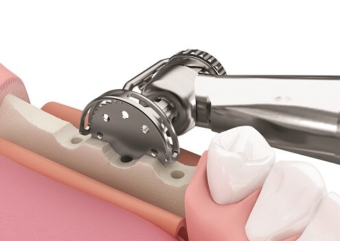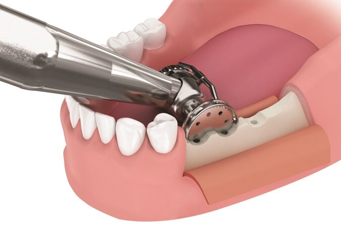 Safe & excellent surgical procedure Patent Application •The shield cover with a 360 – degree revolution can approach in the oral cavity freely •The shield cover rotates to fit on the surface of the bone. It enables you to do the safe surgical procedure. •The hole on the shield cover can make a dentist to observe the surgical area easily. •Holes for lessening bone heating. •Saw thickness : 0.35mm including diamond coating layer. •No shaking and superior cutting power. •Possible to change direction gradually during bone cutting. •Automatic fixation for 0.5~2.5mm. •The shank fixation distance of a handpiece is different according to the brand •Special materials are used. - Excellent corrosion resistance and thermal resistance. - Low noise and improved rotatory power. **It can be combined with various handpieces such as KaVo, W&H, NSK, etc.**