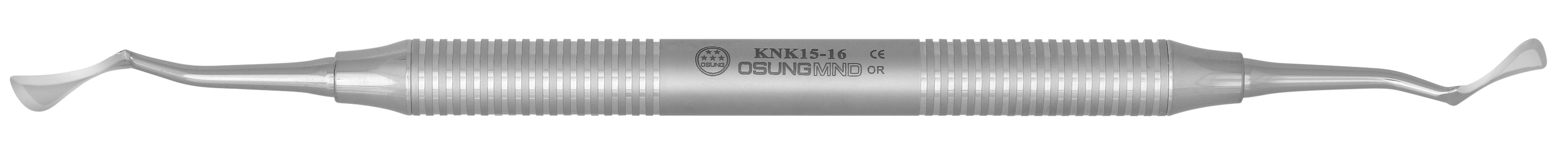 KNK15-16 •Kirkland 15-16 •Used for initial bevel incision for gingivectomy or gingivoplasty procedures. •Easy to access to the distal surface of the posterior. KNO1-2 •Orban 1/2 •The blade & shank are properly angled for posterior use. •Useful for making tunnels of the recipient site.