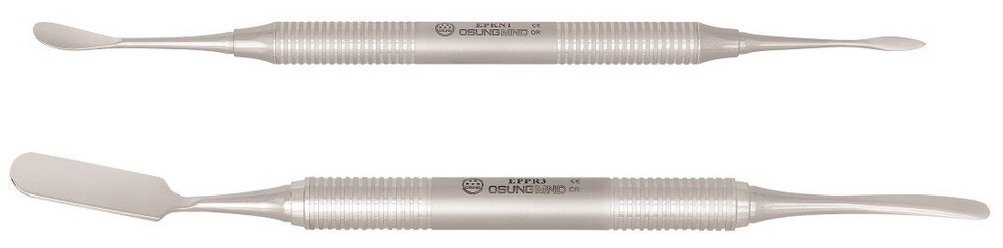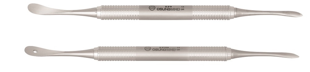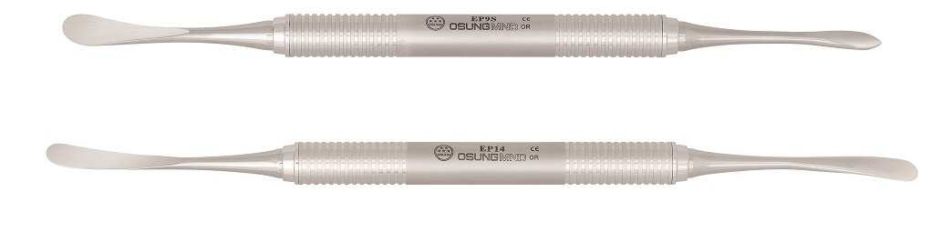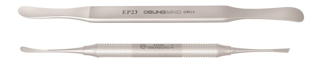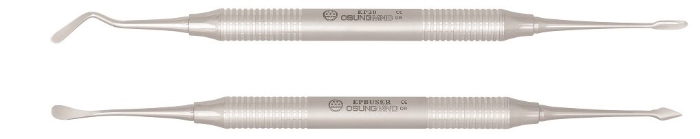 To separate tissue from tooth or bone. To hold tissue away from surgical site. EP9 •Used the most for surgery. •To elevate mucous periosteal with a wide tip. •To elevate interdental papilla with a sharp tip. EP9H •Allen •The hole in the spoon blade helps to hold tissue during suture. EP9S •To elevate mucous periosteal with a wide tip. •To elevate interdental papilla with a sharp tip. EP14 •Goldman-Fox EPPR3 •Prichard •To retract flap EP23 •Selden •To fix tissue by retracting during a flap surgery. EP24G EPKN1 •Small periosteal elevator with one rounded end and the other pointed end for delicate tissue retraction. EPBUSER This is ideal for delicate tissue retraction. The spear shaped end is used for initiating the flap by retracting the interdental papilla. The paddle end is used for continuing flap retraction apically. EP20 •To elevate mucous periosteal after cutting gingiva. •One tip is straight shaped and the other one is contra-angle type with a thin and sharp edge EP15 •Freer EP16 •Freer